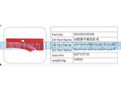 WG1642230108 08 款翼子板后段 右