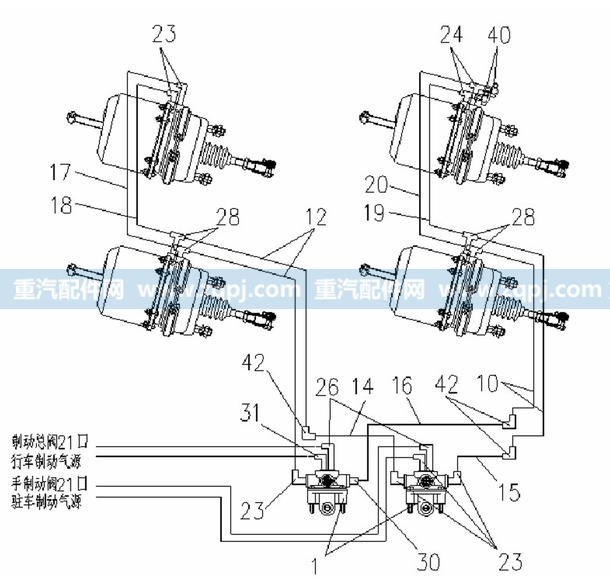 整車 » 中國重汽 » 豪駿 » 制動裝置 » 制動管路系統(tǒng)