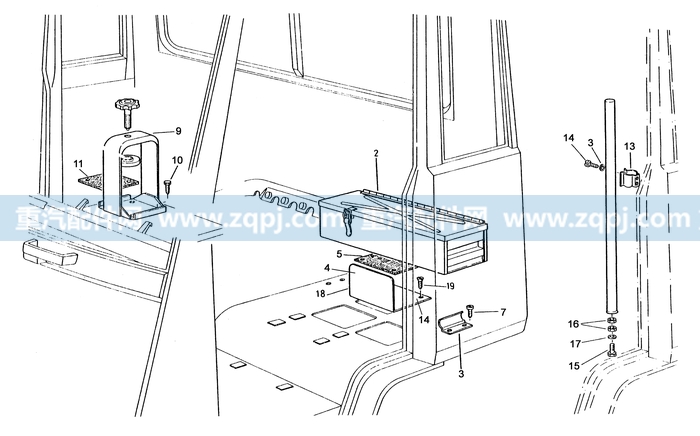 整車 » 中國重汽 » 斯太爾、斯太爾王專用總成 » 駕駛室 » 千斤頂及工具箱的固定