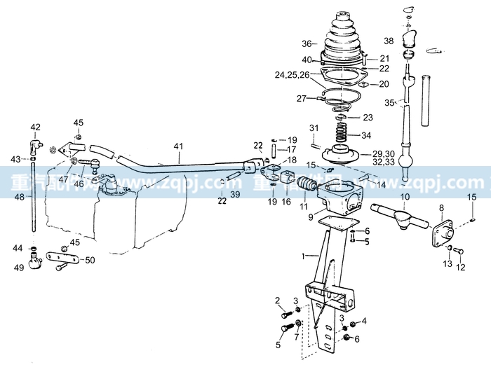 整車 » 中國重汽 » 斯太爾、斯太爾王專用總成 » 變速器支撐裝置和換檔操縱裝置 » 右側(cè)駕駛變速器操縱裝置