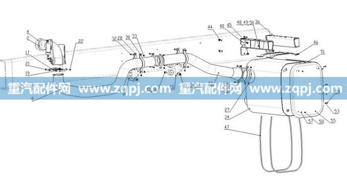 排氣系統(tǒng)裝配圖(howo8x4) (az9731540000) 的通用位置